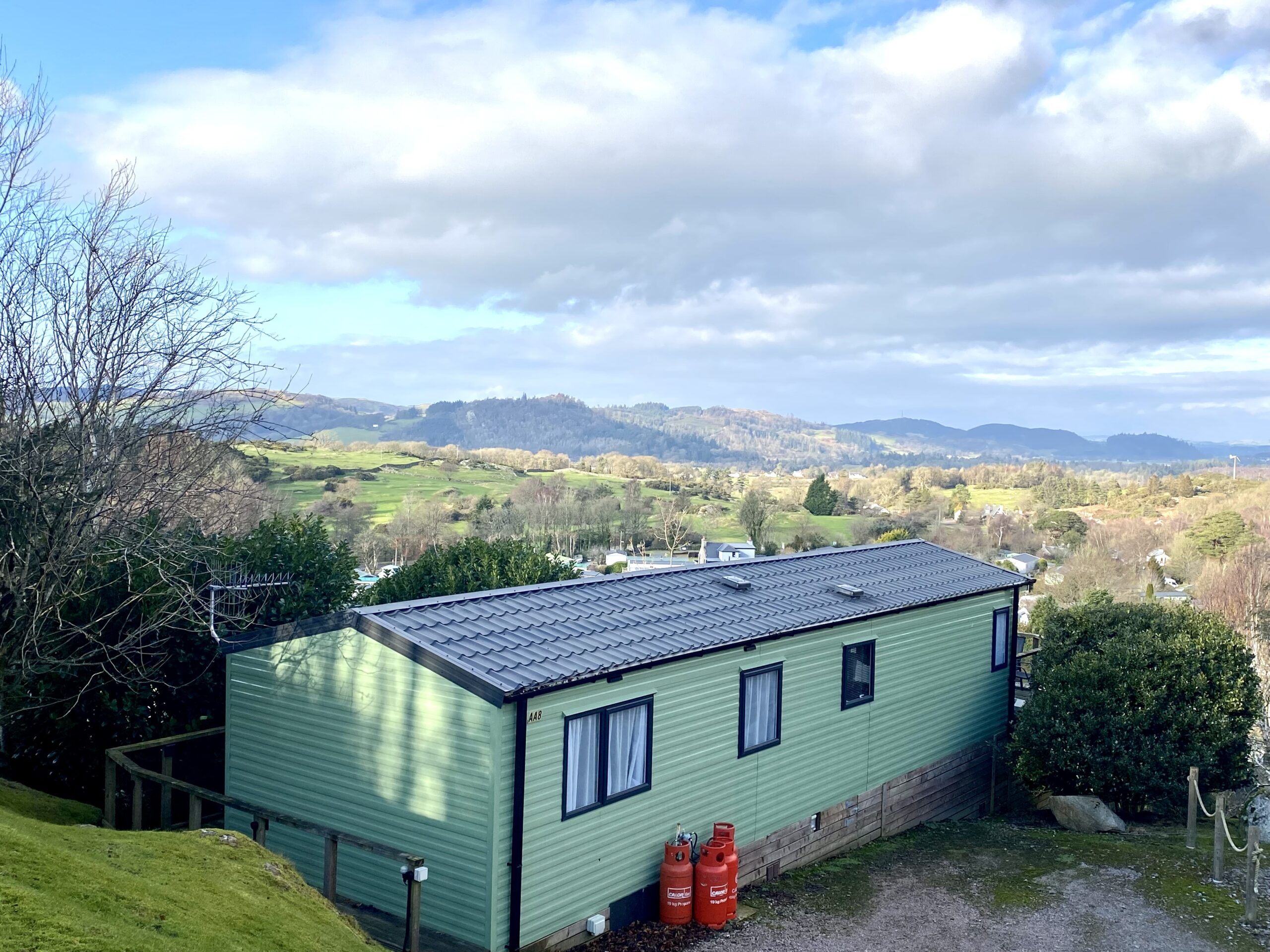 Sliding patio doors to the front flood the space with natural light and open out to enjoy the surrounding scenery. Positioned near the top of the park, the caravan benefits from an elevated setting with expansive views, adding to its appeal.