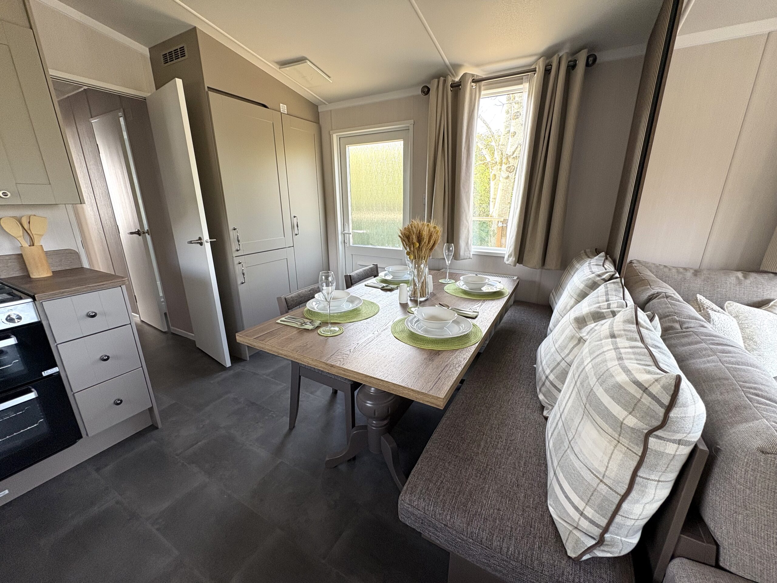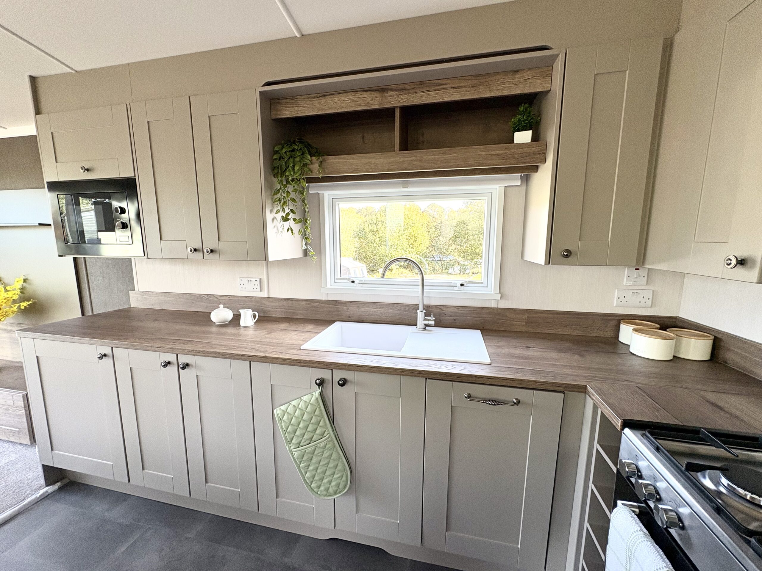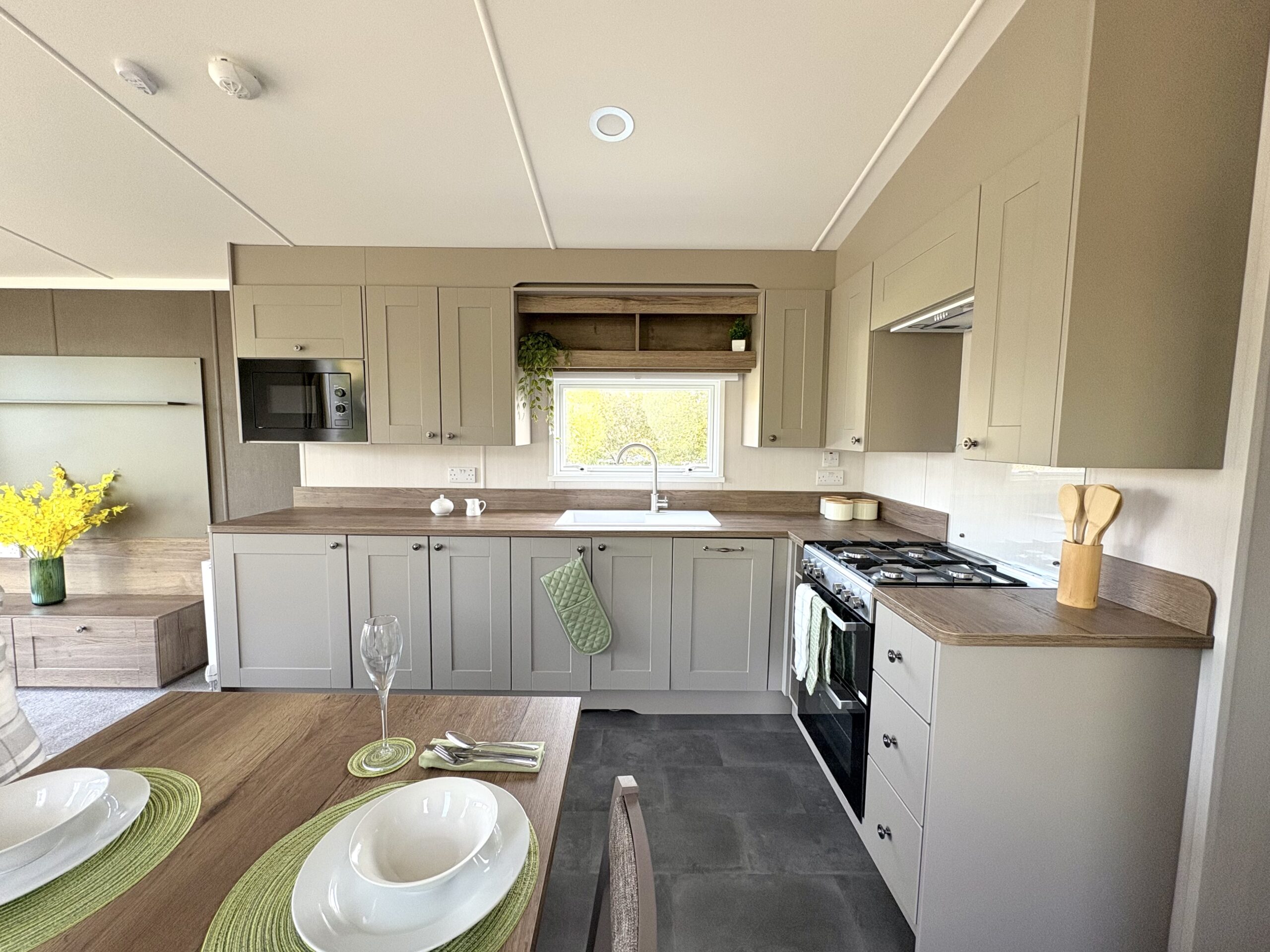 Nestled in the tranquil beauty of Coastal Kippford, one of Scotland’s most scenic and peaceful holiday parks, the Swift Morlaix is set to redefine modern holiday living. Designed with both style and practicality in mind, this brand-new holiday home brings together smart space-saving solutions, a calming farmhouse-inspired interior, and high-spec features throughout. Whether you’re enjoying morning coffee with views of the Solway Firth or strolling forest paths at sunset, this is a setting where you can truly relax and unwind. This beautiful caravan has now been sited on plot H13 in the lower park.